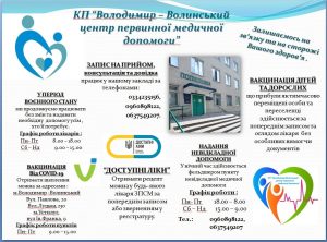 Графік роботи лікарів-педіатрів Володимир-Волинської АЗПСМ №2 з 04.04.2022р. по 10.04.2022р